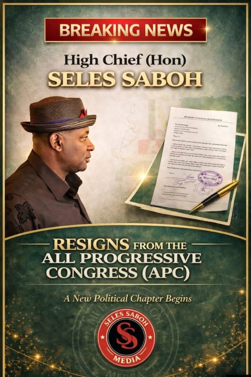 Seles Saboh Media hereby announces that High Chief (Hon.) Seles Saboh has formally resigned his membership from the All Progressives Congress (APC), effective Thursday, 19th March 2026.